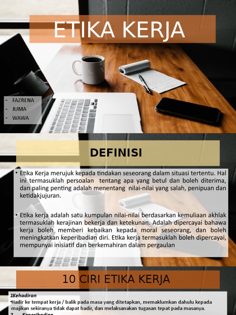 10 Ciri Etika Kerja - 2 etika kantor dalam praktik dalam dunia kerja etika sangat penting, karena etika menjadi kunci dan panduan profesionalisme kerja, jadi sebelum bicara profesional atau tidak, yang namanya etika harus terlebih dulu dipahami.. Sebagai murid kristus, kita juga harus menerima pengajaran tentang etika allah. 2 etika kantor dalam praktik dalam dunia kerja etika sangat penting, karena etika menjadi kunci dan panduan profesionalisme kerja, jadi sebelum bicara profesional atau tidak, yang namanya etika harus terlebih dulu dipahami. 16 sy.del etika kerja page 31 of 36 ü serbet diletakkan di atas pangkuan pada saat mulai makan; Membina atau menyebarkan virus adalah. Kata ini sendiri berasal dari kata ehos yang memiliki arti sikap, kepribadian, watak, keyakinan akan sesuatu, dan karakter dalam diri.