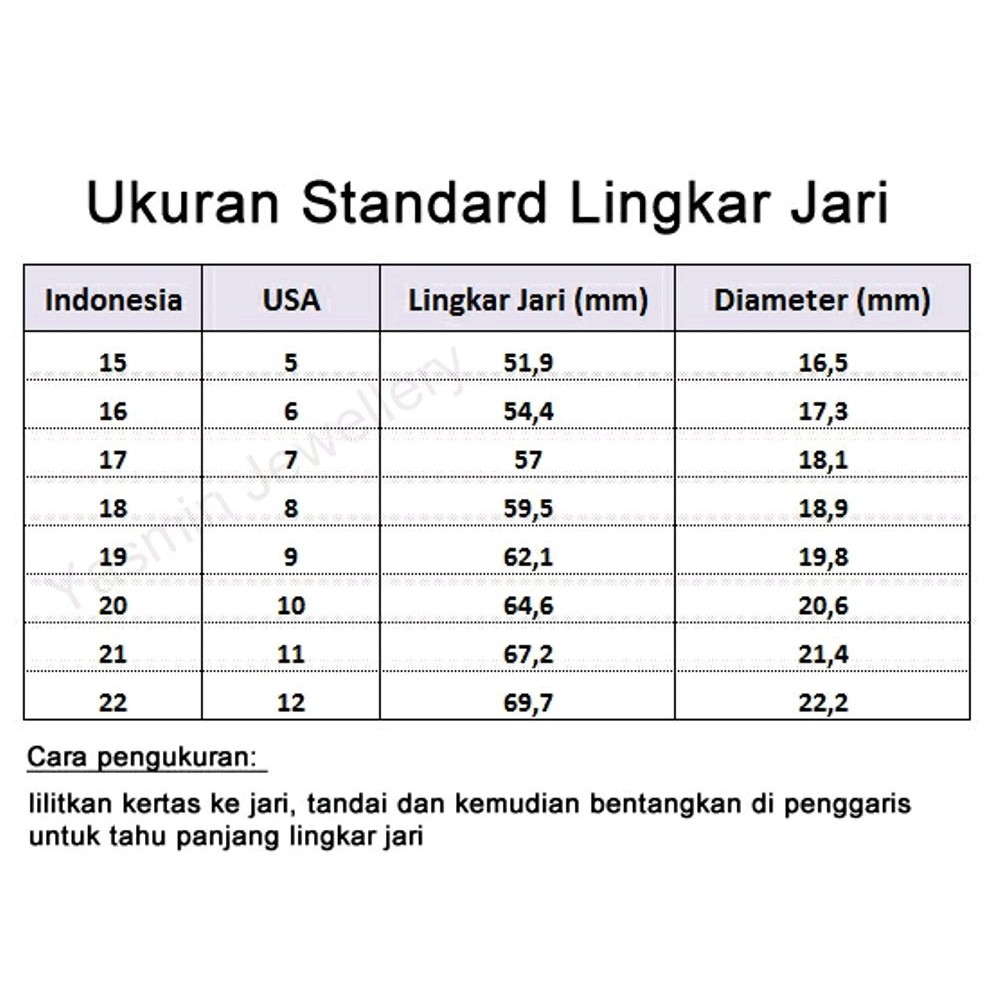 Ukuran cincin menjadi faktor penting selain harga, bahan dan desain. Size 8 untuk ukuran standart. Supaya lebih akurat, lihat bagan ukuran dari toko cincin langganan anda. Inch to cm conversion table. Size 7 untuk ukuran besar.