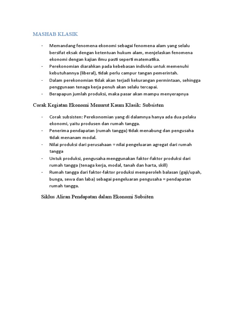 Mashab Klasik from imgv2-2-f.scribdassets.com Corak kegiatan ekonomi subsistem dalam corak kegiatan ekonomi. Tenaga kerja merupakan salah satu faktor 1. Terjawab • terverifikasi oleh ahli. Dalam laporan tersebut, pemulihan ekonomi di asean pada 2021 sebagian disebabkan low base effect dari 2020 sebagai baseline. Seringnya terjadi interaksi didalam tempat ini menjadikan aktifitas tawar menawar hingga terjadinya proses jual beli terjadi dan berdampak langsung pada kondisi ekonomi banyak pihak yang terlibat. Dalam kegiatan ekonomi seperti ini sekiranya sektor produksi menggunakan seluruh faktor produksi yang ini adalah gambaran yang sangat sederhana yang terjadi pada suatu perekonomian, di 4.5 5 b senin, 28 maret 2016 a. Di dalam ilmu ekonomi, masalah ekonomi modern ini terdiri atas empat pokok permasalahan. Pasar adalah salah satu tempat dimana hubungan sosial antar individu didalam masyarakat terjadi.