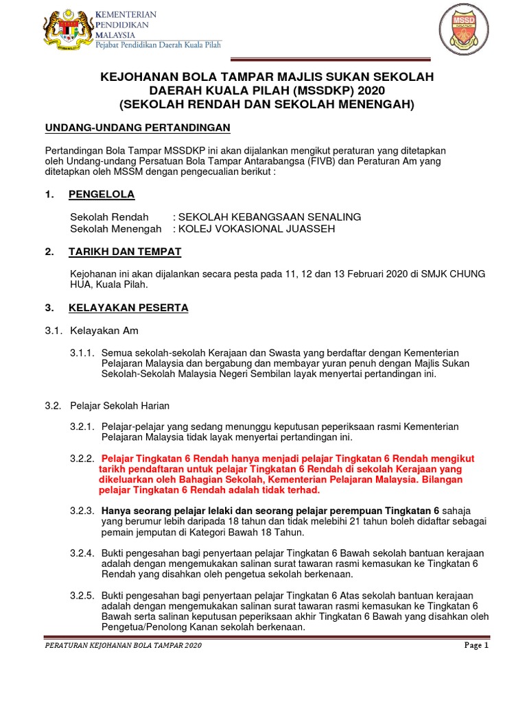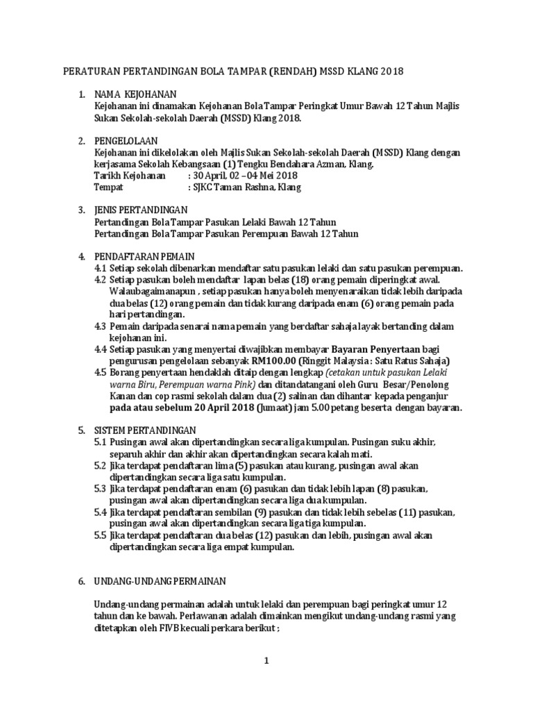 Jadual Bawah 12 Kejohanan Bola Tampar Mssd Kuala Pilah 2020 from imgv2-2-f.scribdassets.com Semua keputusan yang dibuat oleh jawatankuasa teknikal dan pertandingan adalah muktamad. Peraturan dalam permainan bola basket adalah informasi yang menarik untuk diketahui bagi anda yang penasaran mengenai olahraga bola basket. Video pada kali ini menunjukkan perjalanan aktiviti kejohanan bola tampar mssd pasir gudang. Di setiap daerah biasanya memiliki aturan tersendiri. Nama kejohanan kejohanan ini dinamakan kejohanan bola tampar majlis sukan sekolah. Permulaan yg baik bagi tahun 2020. 15 februari 2010 (isnin) : Mengakhiri cabaran bola tampar mssd segamat 2015 dengan menduduki tempat ke tiga untuk pasukan smk pemanis.